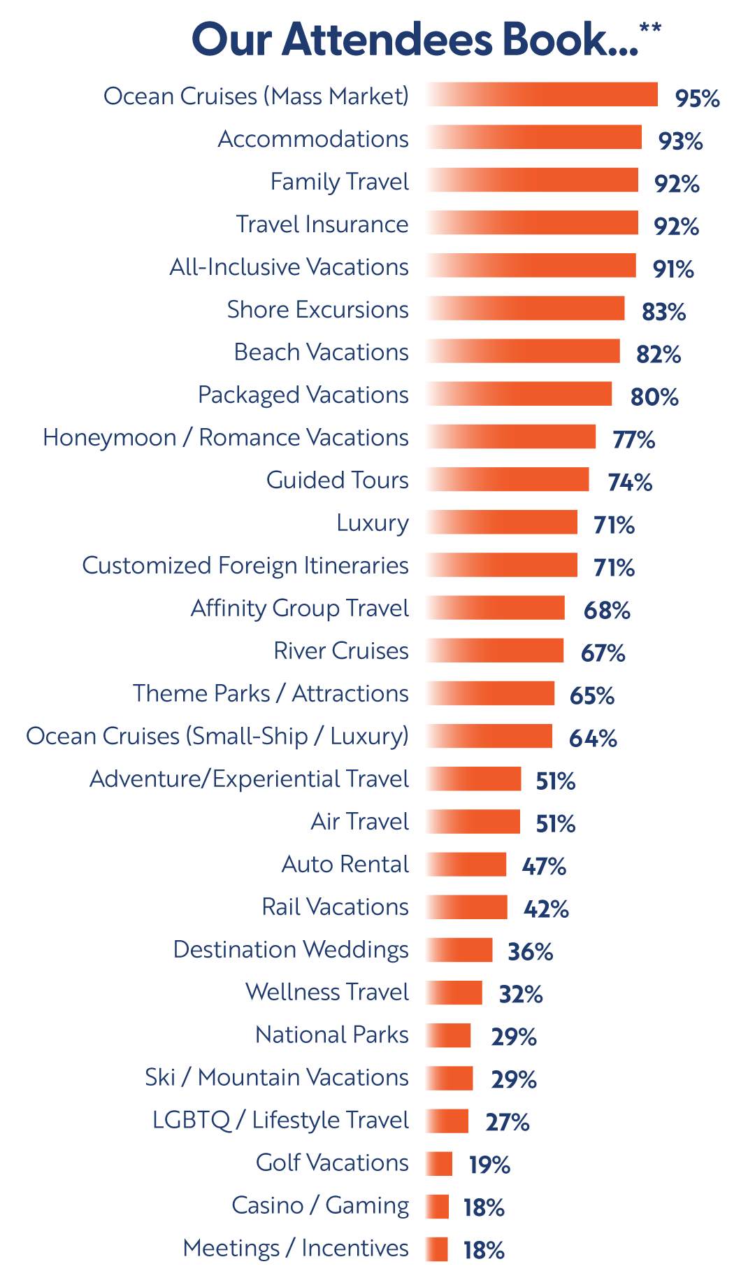 99% of attendees will book/use products and/or services from CruiseWorld Exhibitors