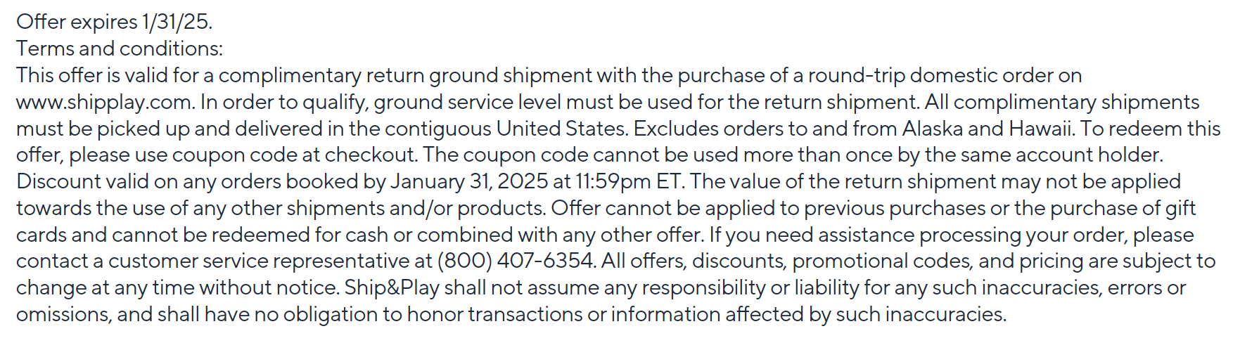 Enjoy complimentary return ground shipping on domestic round-trip orders with code: CWBOGO24